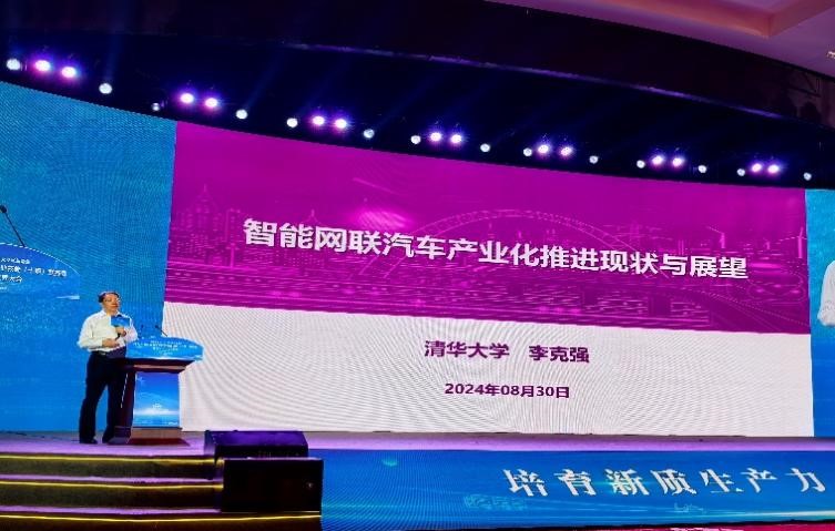 中国工程院院士、清华大学教授李克强,作《智能网联汽车产业化推进现状与展望》主旨演讲。