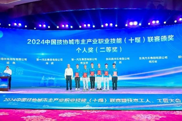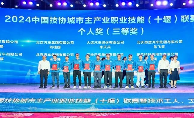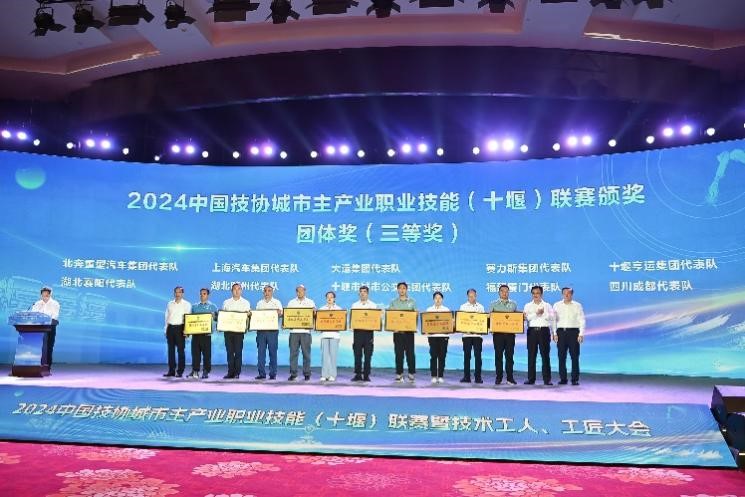 在前一天举行的2024中国技协城市主产业职业技能(十堰)联赛新能源汽车技术(商用车)竞赛上,各参赛选手经过激烈角逐,结果新鲜出炉。大会为获奖团体和个人颁奖。